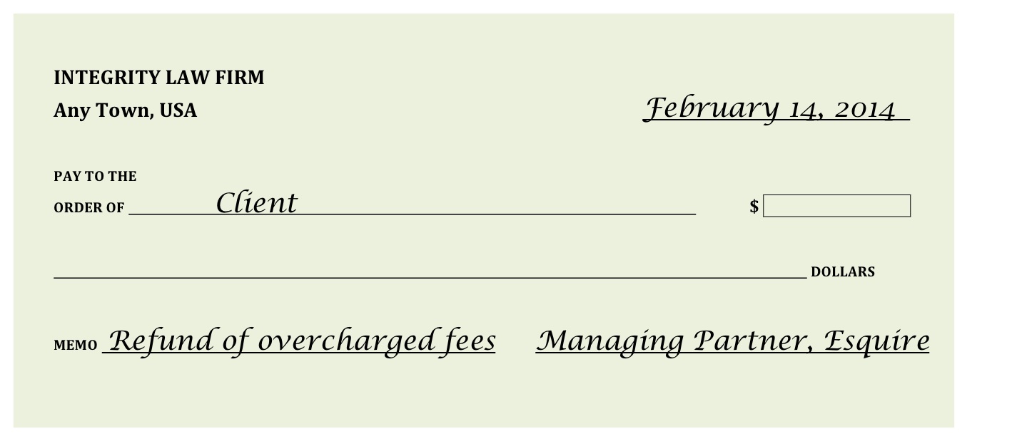 Law firms big and small should take note. A law firm that is honest enough to realize that sometimes clients are over billed, and that has the integrity to refund the overage, would be in great demand indeed.